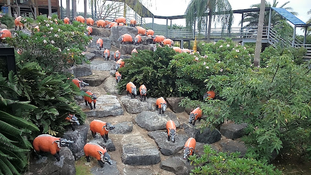 Jalur yang dilewati gajah itu banyak patung2 binatangnya...